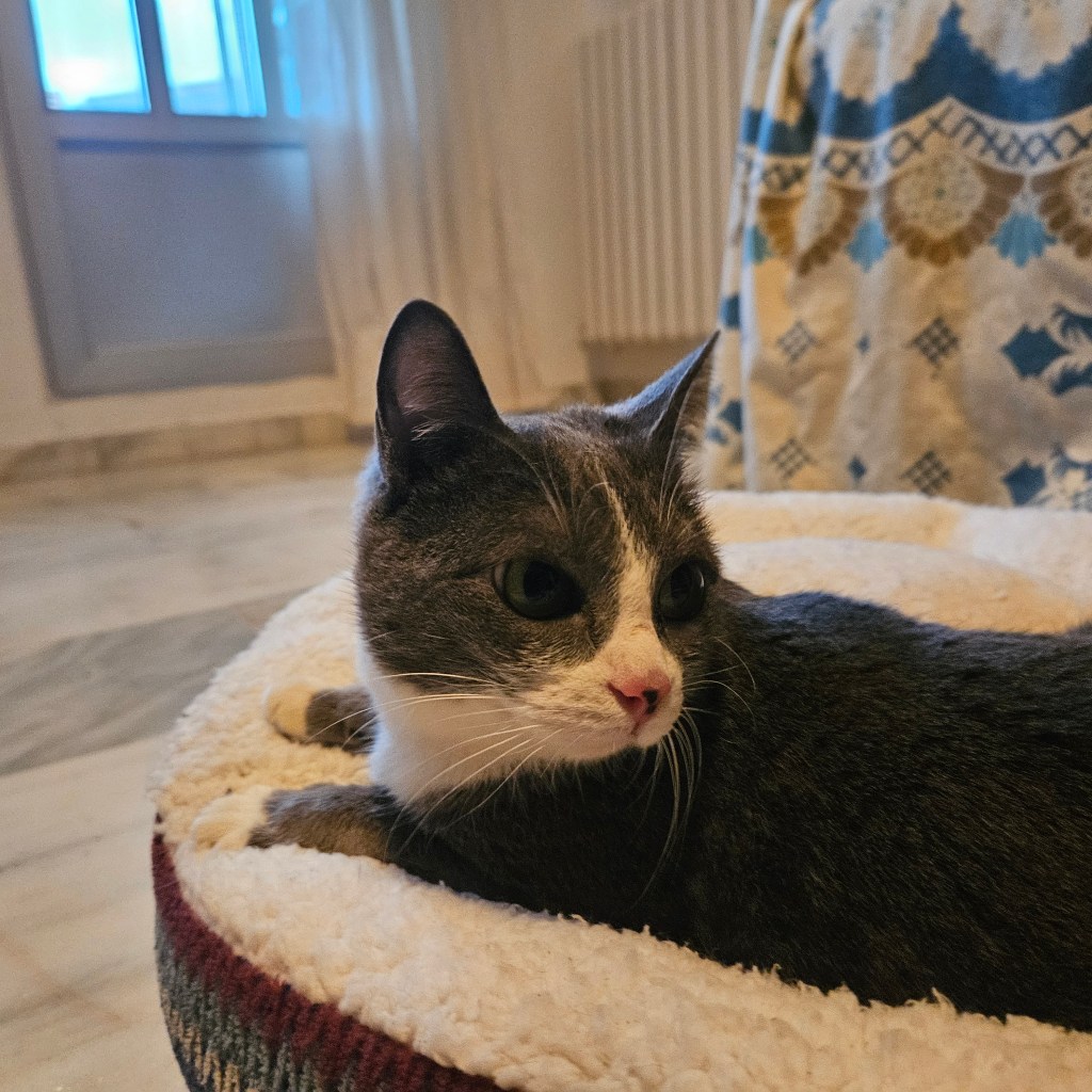 Estas dos hermanas fueron recogidas en una colonia felina en la que las tiraron con un par de días. Praga presentaba una herida abierta en su abdomen que le costó mucho cicatrizar, pero de la que no le ha quedado ninguna cicatriz.