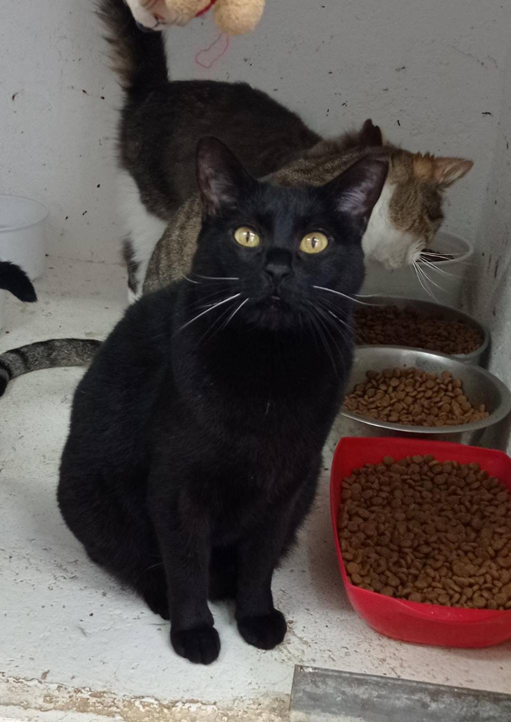 Esta gatita es una de los 18 gatos que se rescataron, en un domicilio de Ciudad Real tras fallecer su dueña. Los animales llevaban 10 conviviendo con el cadáver cuando llegaron las autoridades, muchos de sus compañeros fallecieron debido al estado deplorable en el que se encontraban. Shadow desde el primer momento ha sido de los mas sociables tras el rescate, es una gata muy buena y cariñosa, con un carácter dulce y tranquilo.