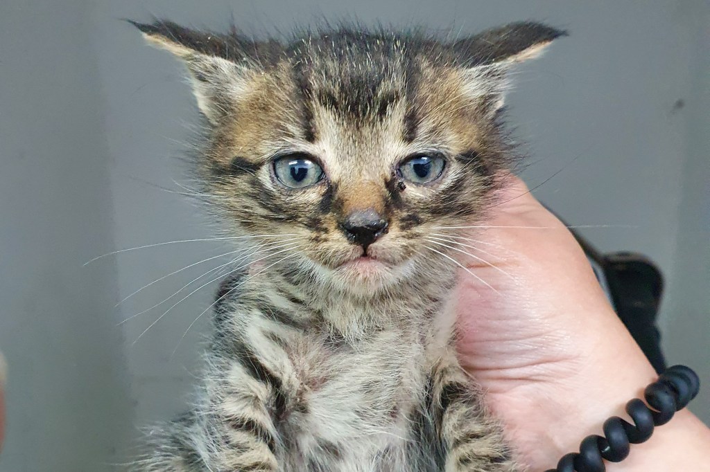 Este peque es uno de los 4 bebes que han nacido en una de las colonias que estamos controlando, en principio íbamos a esperar a tener acogida para ellos antes de rescatarlos, pero el que hoy su madre haya entrado en una de las jaulas trampa y la cantidad de agua que ha caído que ha inundado el agujero donde se escondían ha precipitado su rescate. Se necesita acogida urgentemente hasta que se puedan entregar en adopción.