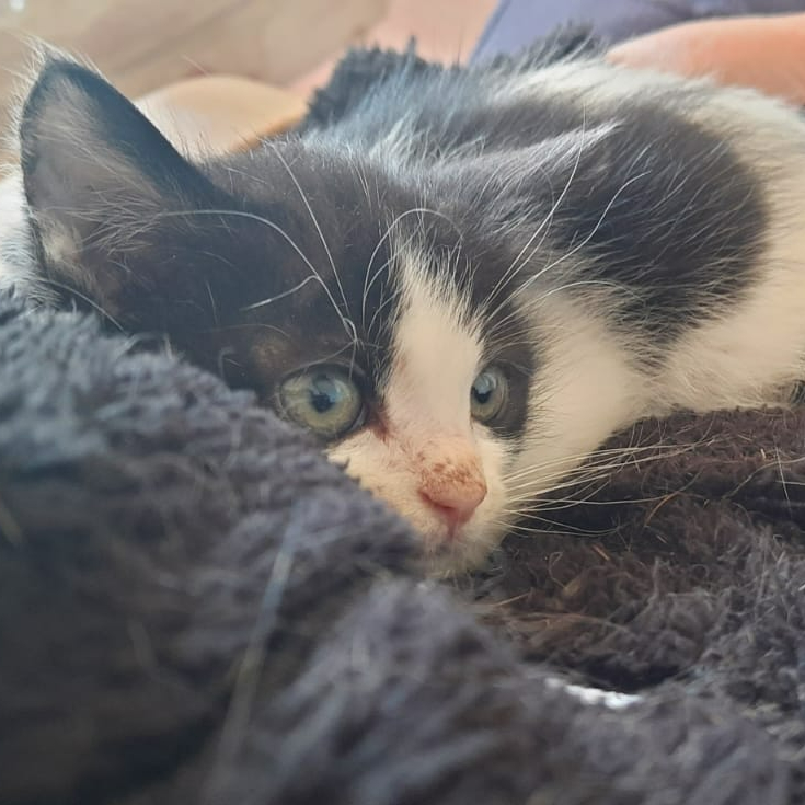 Este peque es uno de los 4 bebes que han nacido en una de las colonias que estamos controlando, en principio íbamos a esperar a tener acogida para ellos antes de rescatarlos, pero el que hoy su madre haya entrado en una de las jaulas trampa y la cantidad de agua que ha caído que ha inundado el agujero donde se escondían ha precipitado su rescate. Se necesita acogida urgentemente hasta que se puedan entregar en adopción.