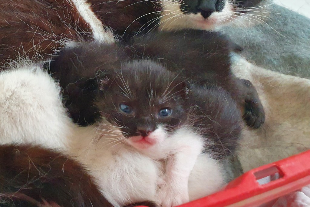 Dino es uno de estos bebes, está creciendo sano y salvo con el cariño de su madre y sus hermanos.