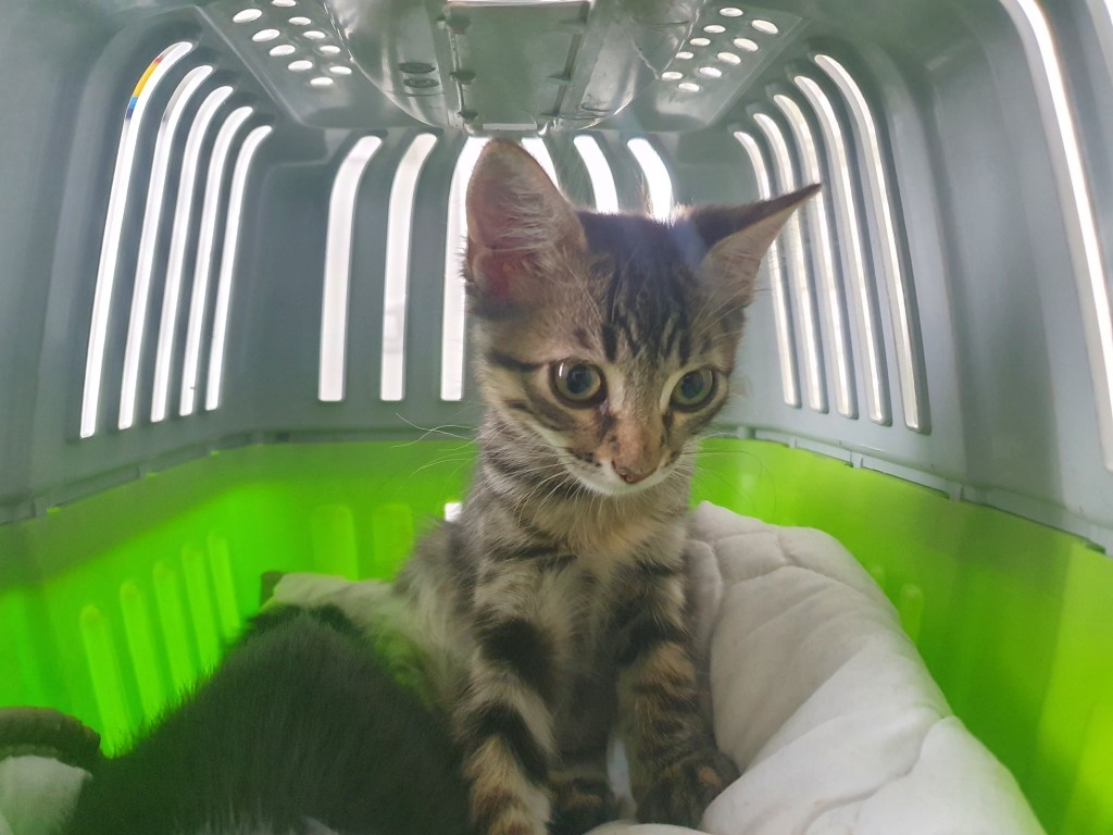 Este peque es uno de los 16 bebe abandonados en una caja en una colonia felina.