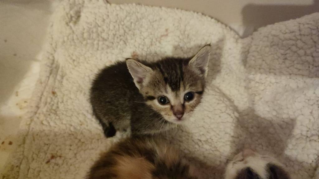 Este peque ha sido rescatado junto a otros 4 gatitos en una caja junto a los contenedores del refugio.