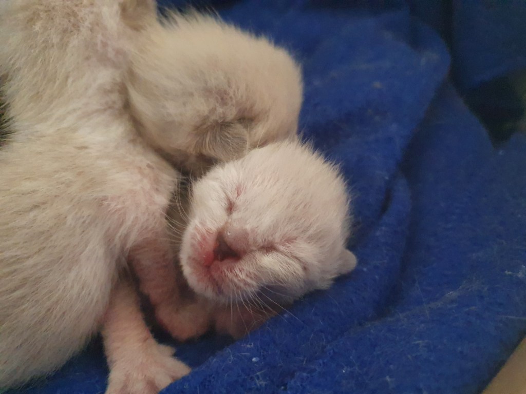 Este peque y sus hermanos han sido encontrados en una caja en la puerta del refugio, por suerte una voluntaria los encontró, ya que debido a las horas a las que los abandonaron lo normal es que se hubieran encontrado muertos al día siguiente, al no haber nadie en el refugio a esas horas. Los 4 pequeños están luchando por sobrevivir.