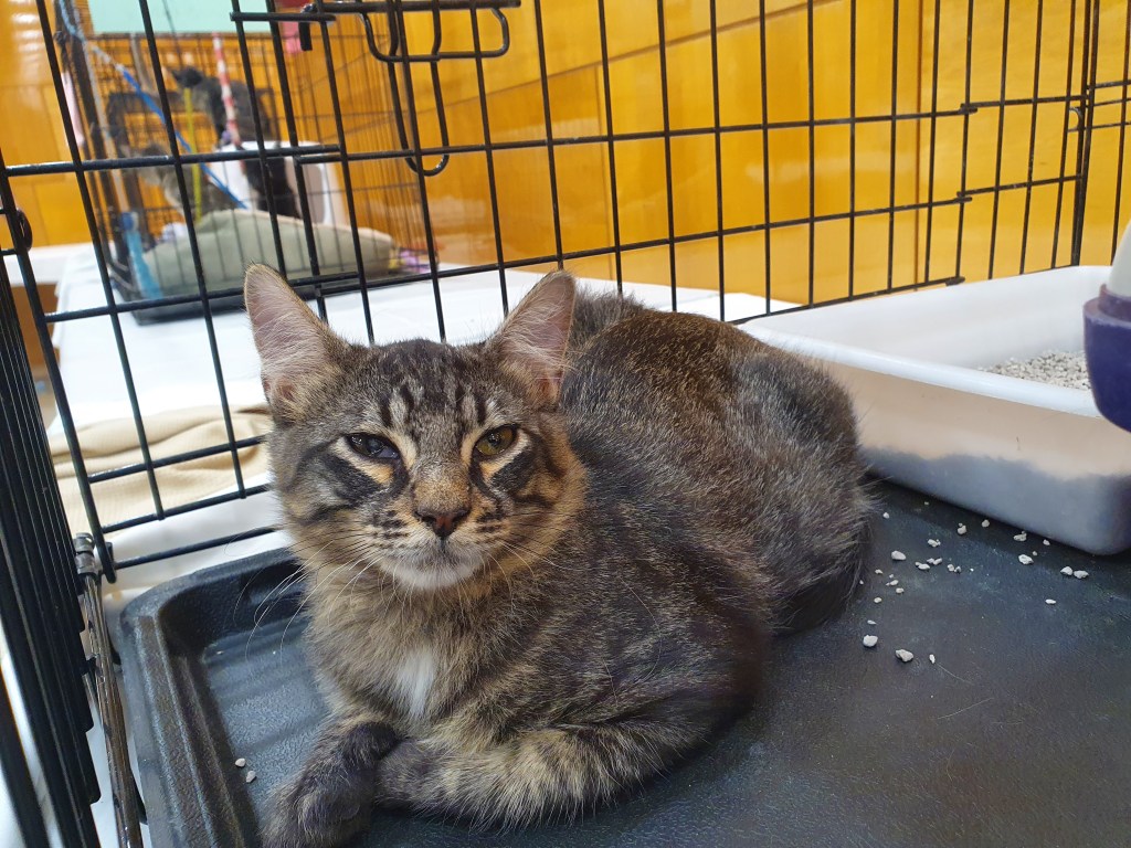 Esta gatito fue recogido en el estado en el que veis en una colonia felina por su alimentadora, poco a poco ha ido ganando peso y curándose, es un gato de un carácter espectacular, muy bueno y cariñoso.