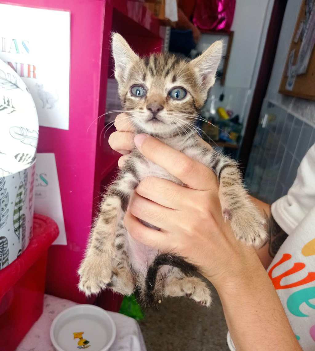 Este peque y sus hermanos han sido recogidos en una colonia felina al estar muy enfermos con los ojitos, poco a poco se están recuperando.