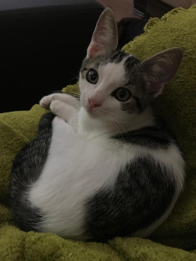 Gracias a la persona que nos dio aviso y que lo tiene en acogida, está pequeña se está creciendo muy bien, y cada vez se mueve con más naturalidad, como todos los bebes es activa y juguetona por lo que se priorizan adopciones que ya tengan otro gato en la familia.