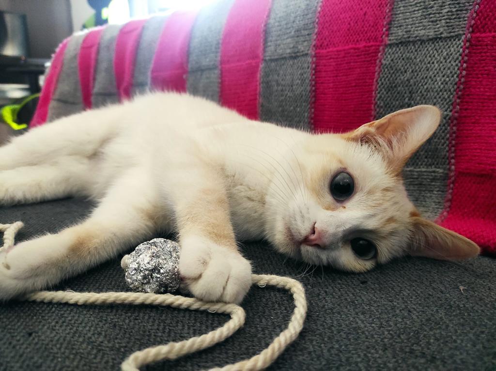 Esta peque fue rescatada en una colonia felina de bebe, tuvo la suerte de encontrar un hogar, pero desgraciadamente a los pocos meses nos la han devuelvo por un problema de alergia.