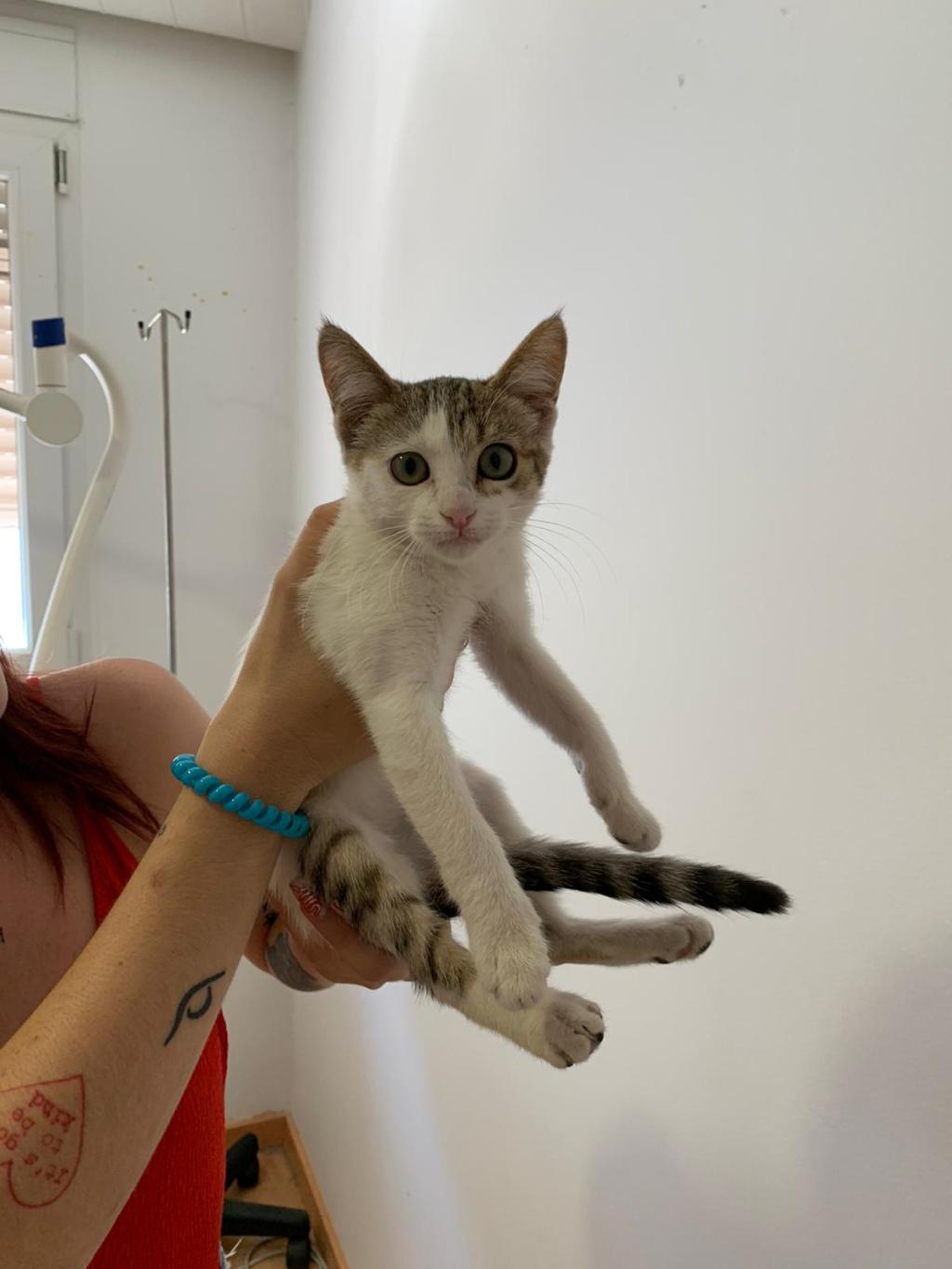Esta gatita ha sido rescatada del motor de un coche, es muy buena y cariñosa, solo quiere estar en brazos.
