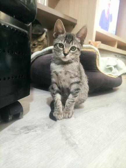 Esta peque ha sido recogido en una colonia felina que estamos intentando controlar. Aunque al principio estaba muy asustado ya se deja coger y mimar sin problemas.