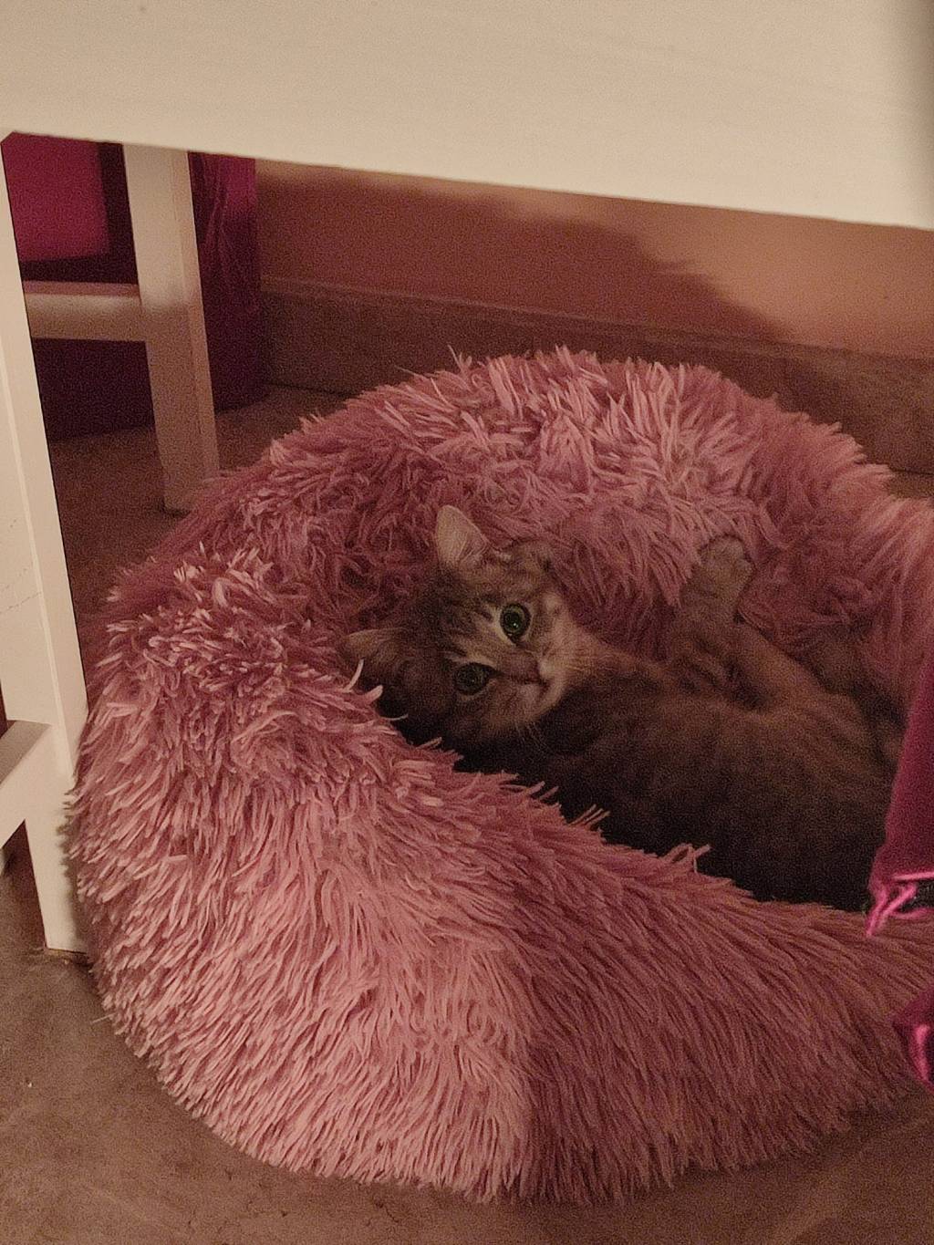 Esta gatita fue recogida como parte del proyecto CER, pero su alimentadora ha decidido darle una oportunidad para socializar. Aunque es tímida nos comenta que poco a poco va cogiendo más confianza y ya se deja acariciar y coger