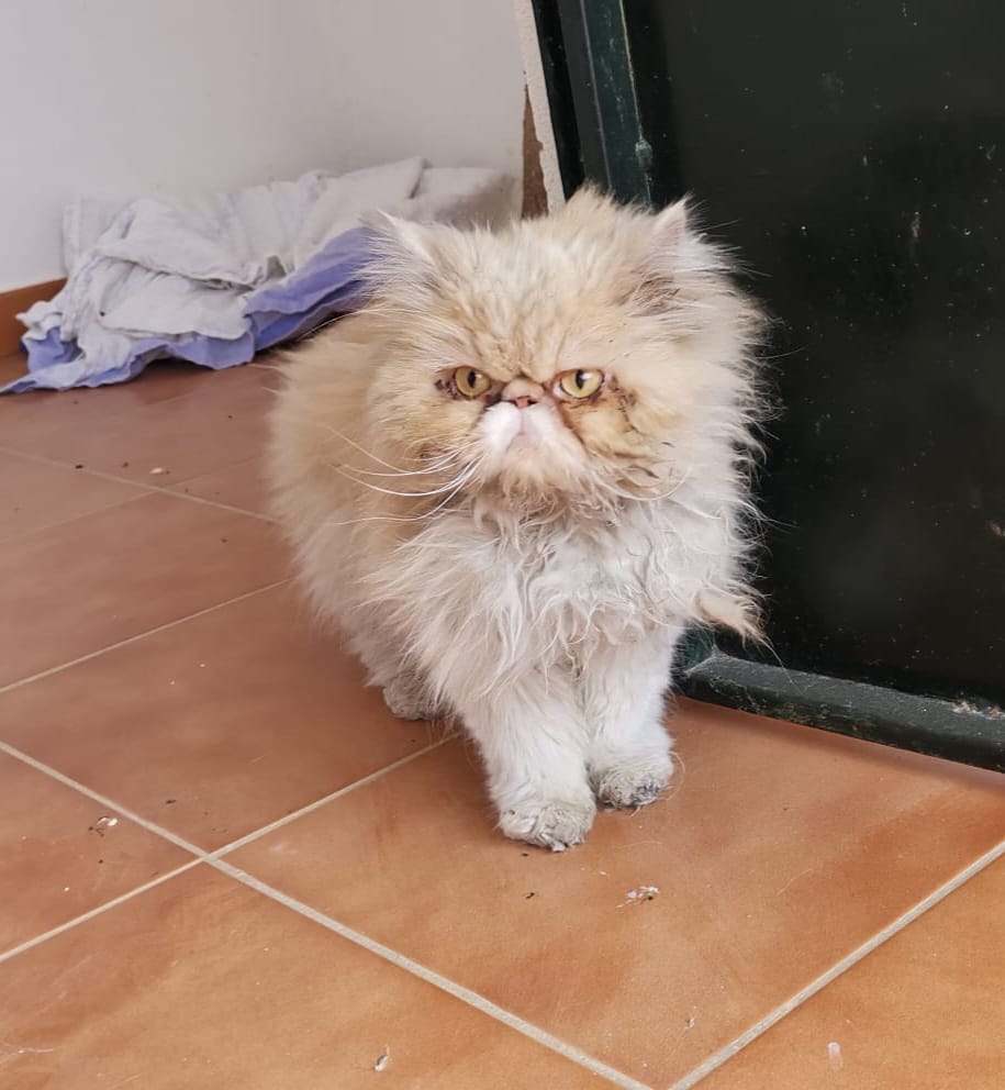 Finalmente ha sido recogido por nuestras compañeras de AMA y en breve pasará por el veterinario y por la peluquería para comenzar su protocolo veterinario.
