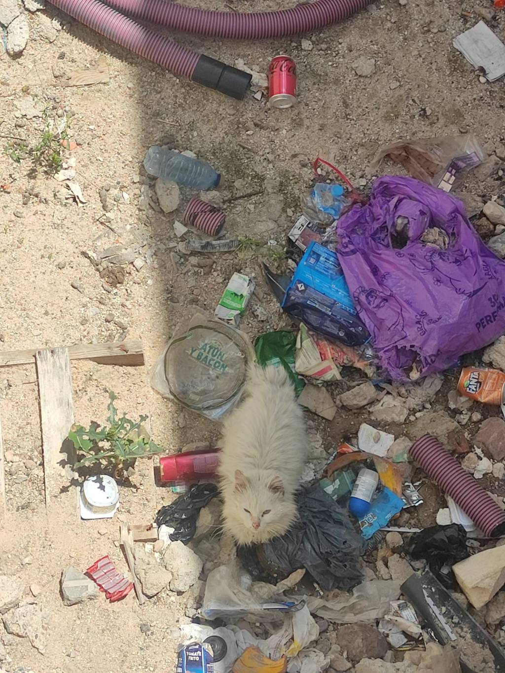 Este gato lleva varias semanas atrapado en un foso de obra sin que nadie le ayudara.
