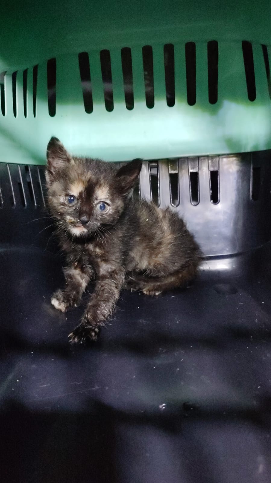Esta peque ha sido abandonada en una colonia felina que tenemos controlada, es muy buena y cariñosa, la pobre está llorando desconsolada en la zona de alimentación hasta que se recogió