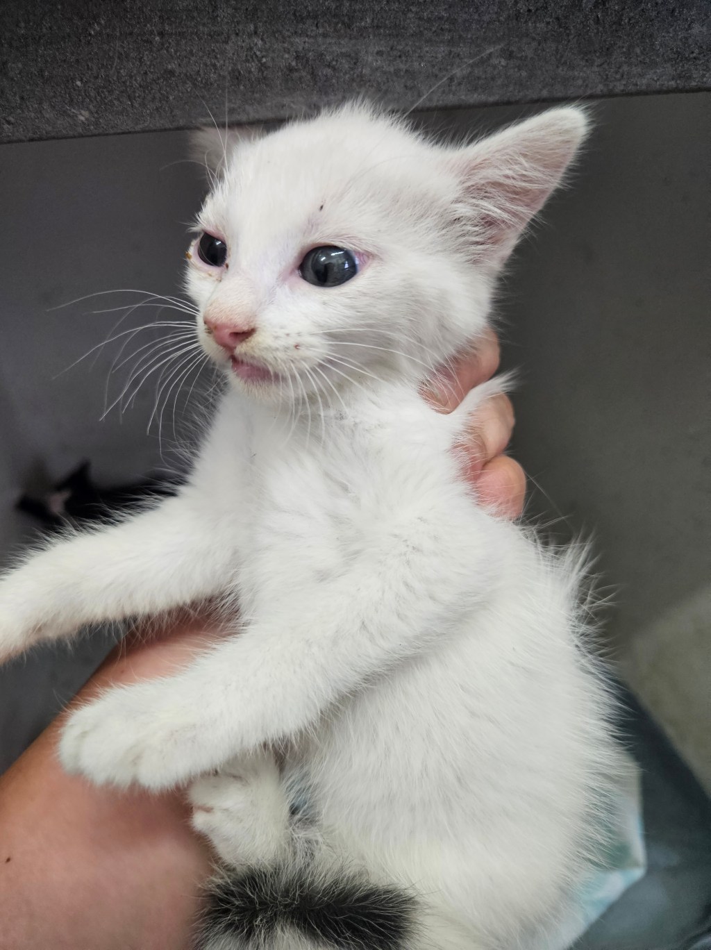 Este precioso gatito ha sido recogido en una colonia felina junto a sus hermanos y su madre.