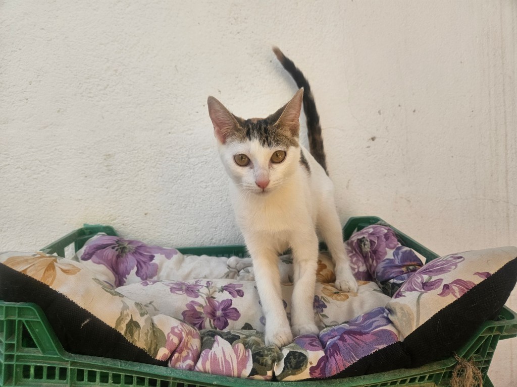 Este peque y su hermano vinieron en verano de acogida a nuestro refugio, su hermano por suerte ha sido adoptado, pero ella aún continua en adopción.