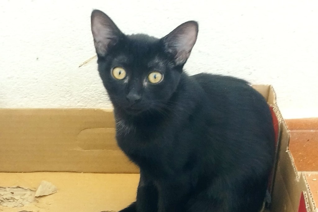 Esta pequeña ha sido dejada en una caja junto a otra gatita de otra camada en la puerta del refugio.
