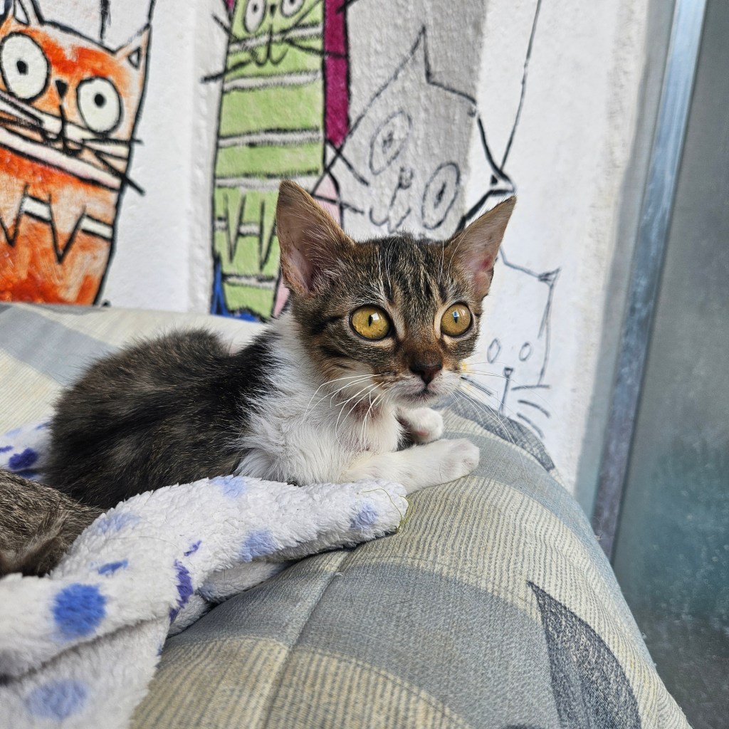 Este peque y sus hermanos han sido encontrados en una caja abandonados y llevados al refugio.