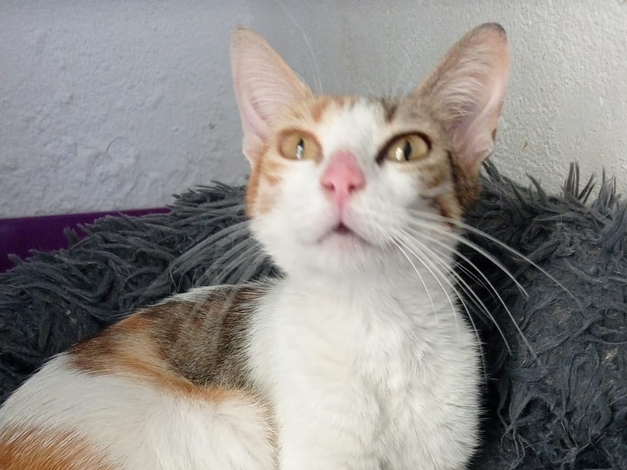 Esta gatita ha sido recogida gracias a la colaboración de las asociaciones de la zona, y finalmente ha terminado en nuestro refugio para completar su protocolo veterinario.