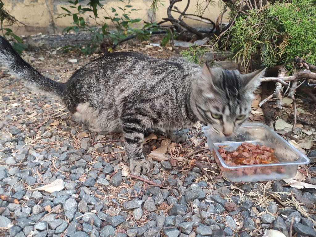 La alimentadora nos comentó que no sabía seguro cuanto tiempo llevaba abandona ya que un mes atrás de su rescate, detecto que alguien había dejado un día comederos nuevos en el punto de alimentación, con lo cual sospechamos que llevaba un mes escondida en la colonia.