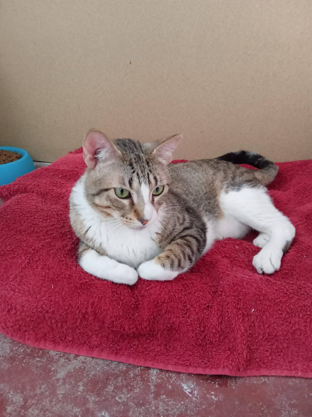 Este gatete fue recogido supuestamente atropellado en un barrio de Ciudad Real, tras pasar por el veterinario y comprobar que no le pasaba nada, se devolvió a «su colonia» tras la confirmación de una de las alimentadoras de que provenía de su colonia.