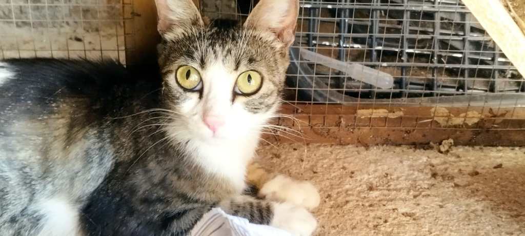 Esta gatita fue abandonada en una colonia controlada en Miguelturra junto a sus dos cachorros, desgraciadamente solo Tirana puedo ser rescatada, encontrando a su hermano fallecido por un atropello.
