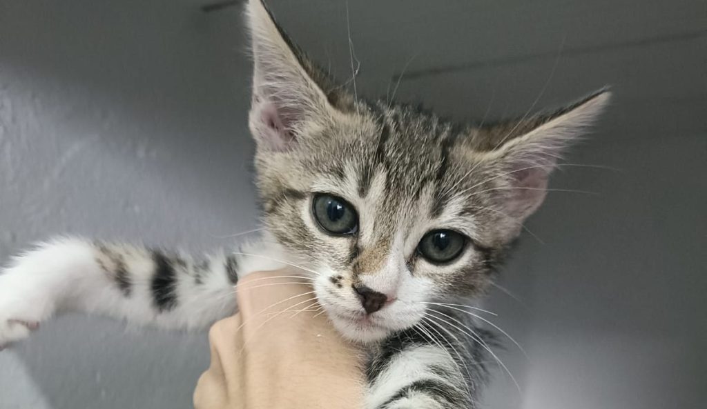 Este bebe y sus hermanos fueron abandonados en un transportín en la puerta del refugio.
