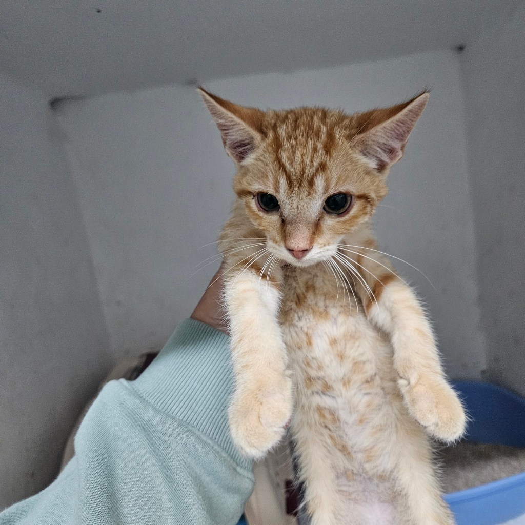 Esta gatita ha sido recogida junto a sus hermanos en una colonia de Ciudad Real donde estamos realizando el Proyecto CER, poco a poco están socializando, y cada día son más sociables