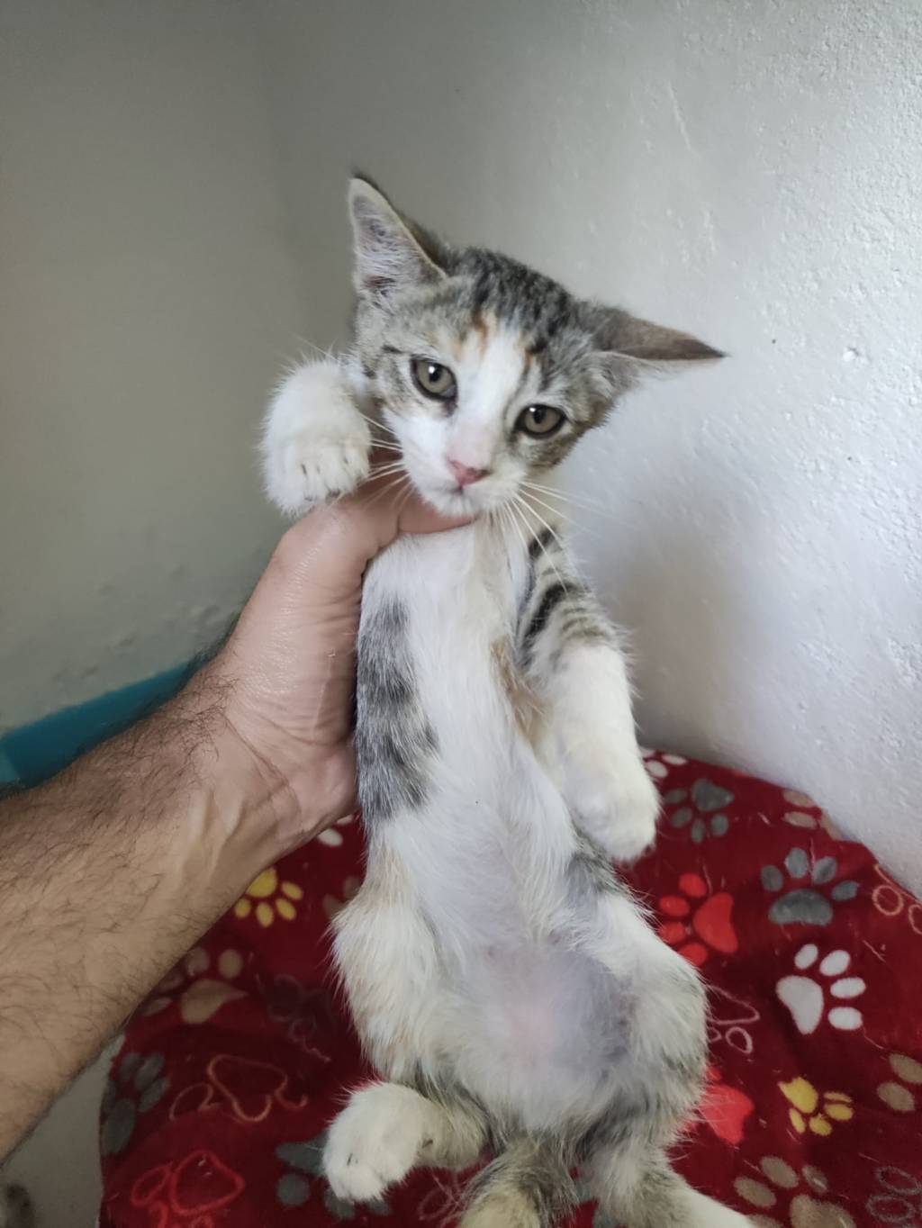 Esta gatita y sus hermanas fueron a dejarlas al refugio en una caja con su madre, cuando se les explicó que no teníamos ni una jaula libre para tenerlos y que solo podíamos hacernos cargo si los acogían se los llevaron de vuelta con la promesa de que iban a hablar con otras asociaciones y plantearse la acogida.