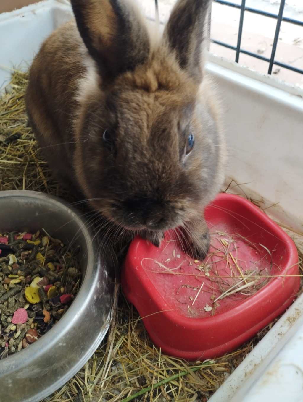 Estos conejitos han sido llevados a la Protectora La Bienvenida de Ciudad Real en una jaula, el blanco y el marrón son machos y los de manchitas hembras.