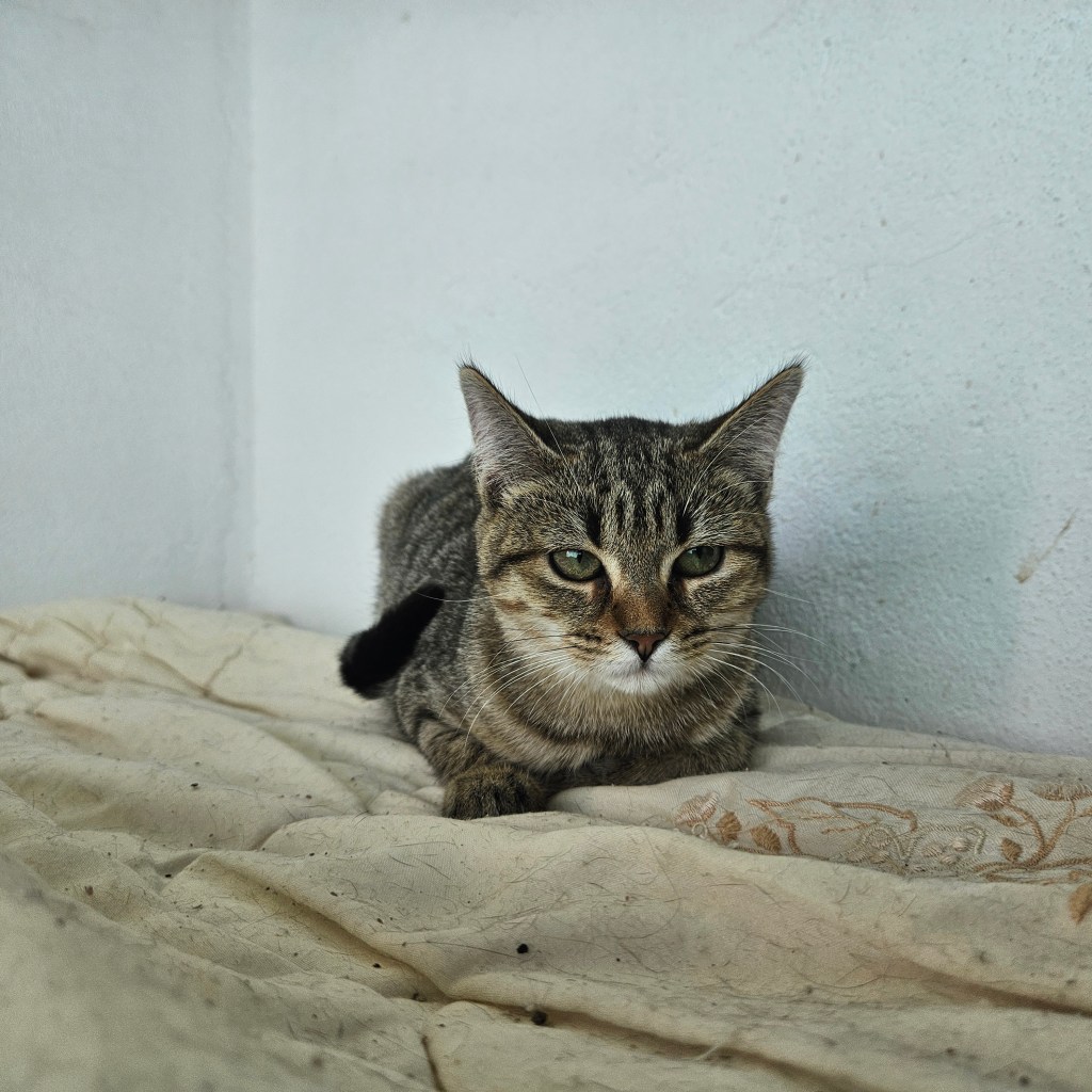 Este peque y sus hermanos son hijos de Enid, una de nuestras mamis guerreras que recogimos recién paridas. Son muy buenos y cariñosos.