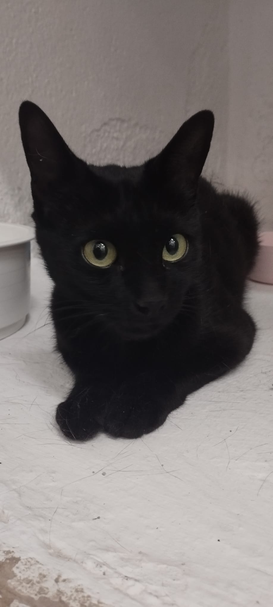Esta gatita fue recogida en la zona de la vía verde mientras perseguía a todo el mundo, es muy buena y cariñosa, está deseando que le den cariño y jueguen con ella.