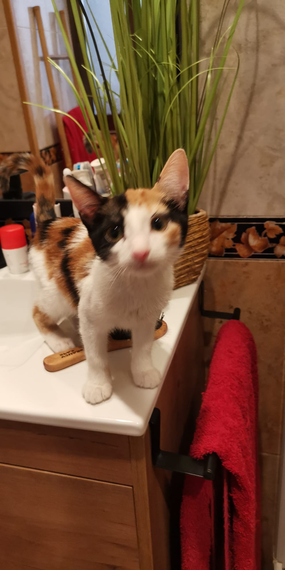 Este gatete fue abandonado en la puerta de una compañera, es una gatita muy buena y cariñosa.