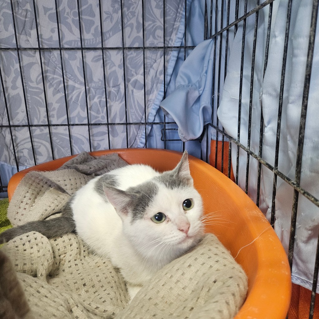Este gatito ha sido recogido tras meterse en el motor de un coche y llegar hasta Miguelturra. Es muy bueno y cariñoso, inicialmente llegó con problemas graves de movilidad, que con tratamiento y reposo están remitiendo.