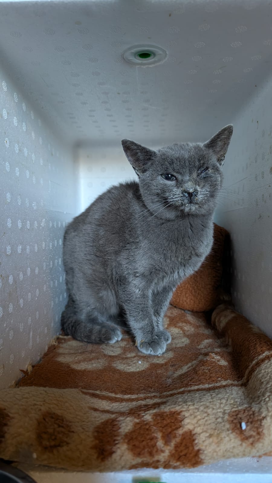 Este peque ha sido recogido muy enfermo en el cementerio de Ciudad Real. Tras su paso por el refugio ha socializado y se encuentra listo para adopción