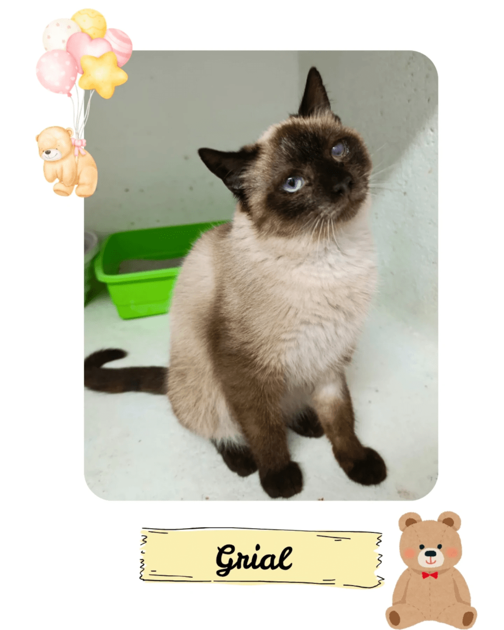 Este peque ha sido recogido en el cementerio de Ciudad Real en un grave estado de salud debido a múltiples virus. Tras un mes en estado muy grave empezó a recuperarse y ahora esta listo para adopción, de su estado anterior le ha quedado secuela en un ojito, pero hace vida normal.