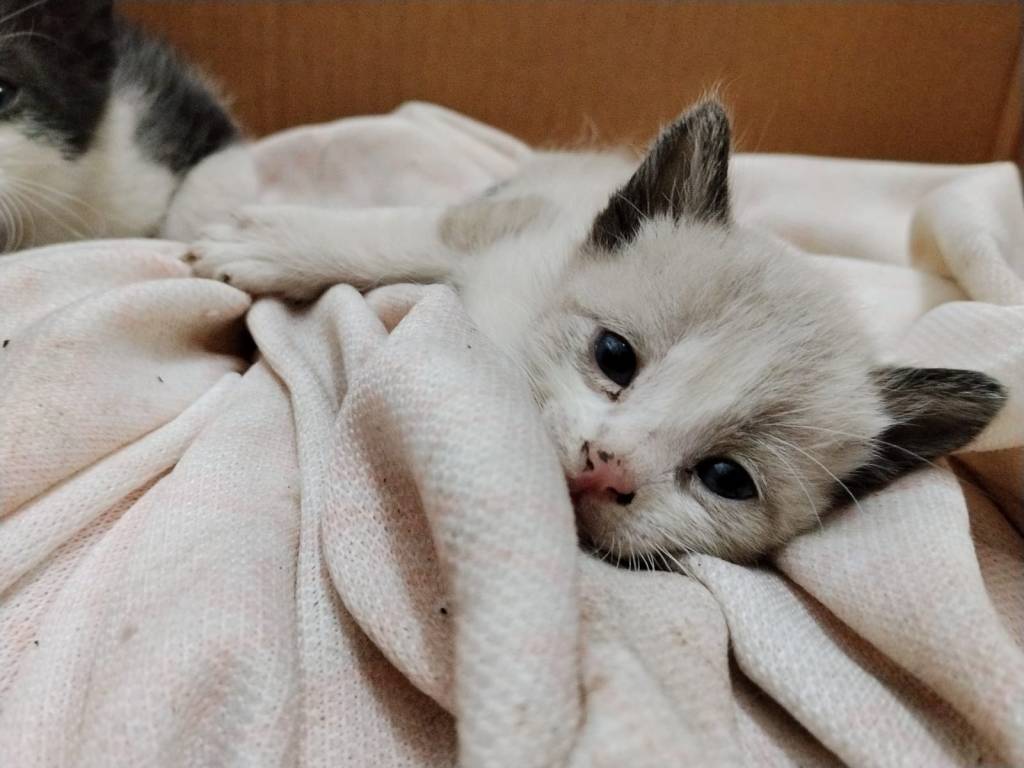 Este gatito y sus hermanos han sido abandonados en un portal de vecinos de Ciudad Real, tras dar tumbos de un lado a otro sin que nadie se responsabilizara de ellos, nos hemos visto obligadas a recogerlos, aun sin ser nuestra responsabilidad.