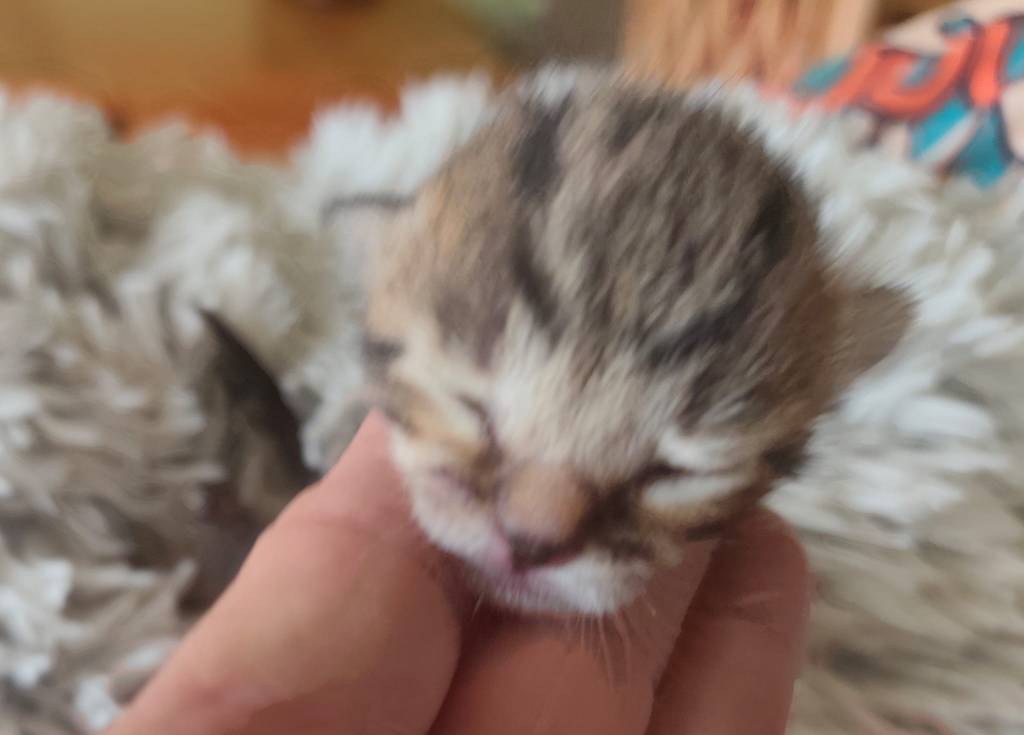 Este gatito ha sido recogido en el cementerio de Miguelturra, junto a sus dos hermanos, los cuales desgraciadamente han fallecido.